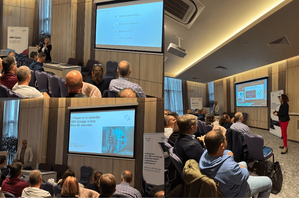 На 2 октомври 2025 г. в х-л Йегерхоф, гр. Пловдив, в рамките на половин ден проведохме корпоративният семинар „Иновации и устойчивост на бизнеса с IBM“. Събитието предизвика изключителен интерес, отвъд очакванията ни – присъстваха над 70 представители на индустриални предприятия и общини от Централна България. Колегите Красимир Рашев и Дафинка Лазарова от IBM България споделиха ценен опит, знания и успешни практики по теми, свързани с: